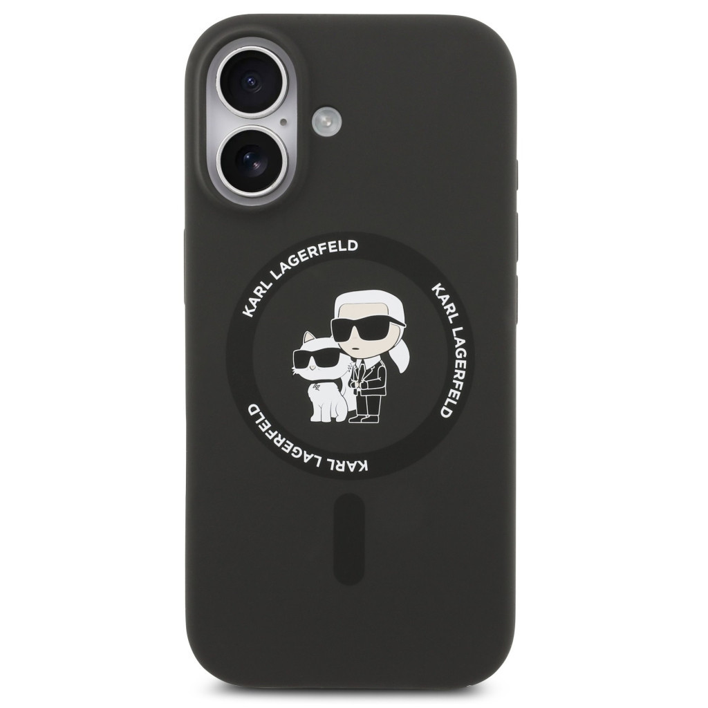 Karl Lagerfeld Liquid Silicone Karl and Choupette MagSafe iPhone 17 hátlap tok, fekete