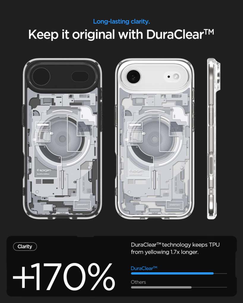 Az Ultra Hybrid Mag továbbra is biztosítja a kiváló ütésálló védelmet, köszönhetően a merev polikarbonát hátlapnak és rugalmas TPU keretnek. Az átlátszó hátlap tökéletesen mutatja be a telefon eredeti designját, miközben a kiemelt keretek extra védelmet nyújtanak a kamera és a képernyő számára.