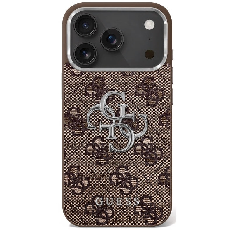 Guess 4G Big 4G Classic Logo Apple iPhone 17 hátlap tok kameravédő peremmel, barna-ezüst