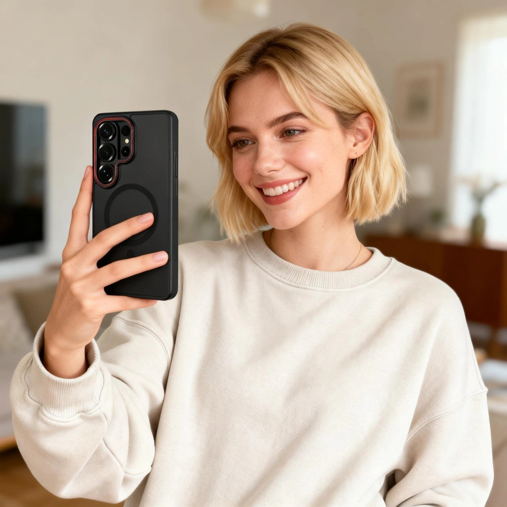 A beépített mágneses gyűrű, amely kompatibilis a MagSafe kiegészítőkkel, lehetővé teszi a vezeték nélküli töltést anélkül, hogy a telefontokot el kellene távolítania. Bármikor és bárhol használhatja a töltést, akadályok nélkül. A tokot fém kerettel szerelték fel a lencsék körül, amely hatékony védelmet nyújt a kamera, a lámpa és az érzékelők számára a karcolásokkal és sérülésekkel szemben.