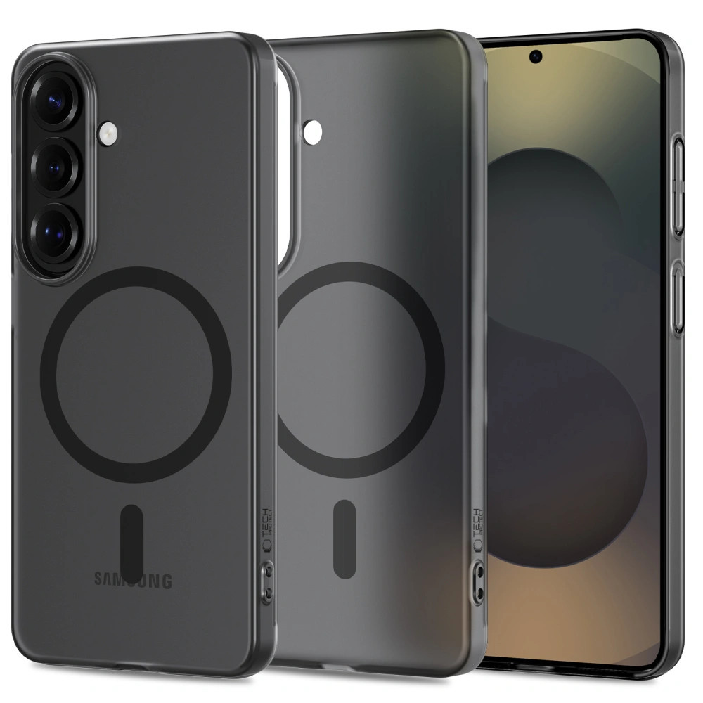 Tech-Protect MagSlim Samsung Galaxy S26 hátlap tok kitámasztóval, MagSafe, áttetsző-fekete